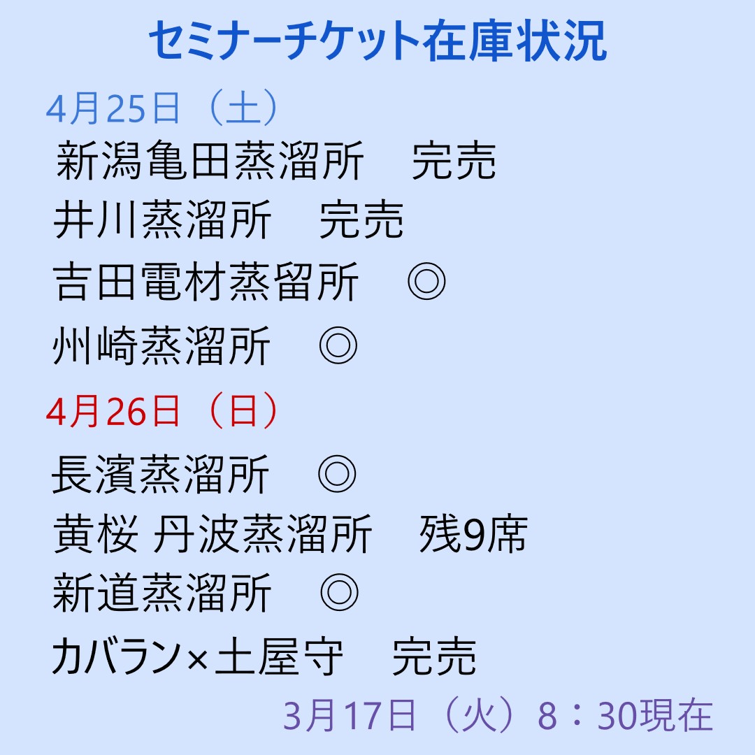 2026年3月17日8時30分現在のセミナーチケット在庫状況です。